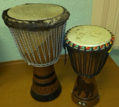 2) Джембе 10" и 13 " - 205$ и 250 $, Сенегал - превосходный тон и слэп без обертонов, суховатый бас. Ручная работа, дерево, кожа. Это воистину король соло в западноафриканском ансамбле, чистейшее звучание, полный кайф.