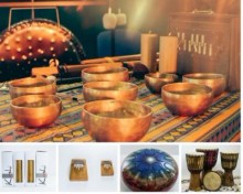 - Колокольчики Коши, тибетские поющие чаши, тиньгши, шрути, калимбы, хэппи драмы (глюкофоны), гонги симфонические и планетарные PAISTE, гонги стихий TONE OF LIFE.